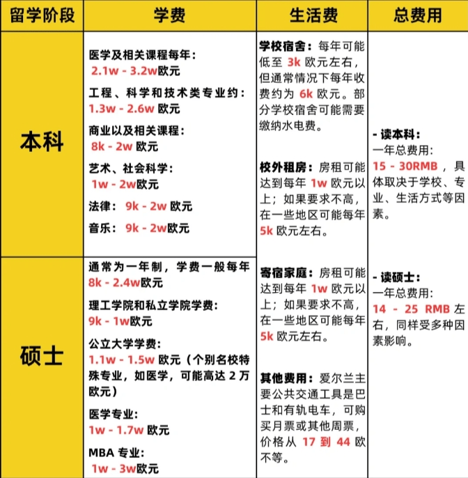 爱尔兰学校不众,但像圣三一、都柏林金都是世-界级名校,角逐力相对较小,双非也能申请TOP3,打工时薪或者正在10€把握,爱尔兰硕士学费15万把握,生涯费每年正在10w-15W。